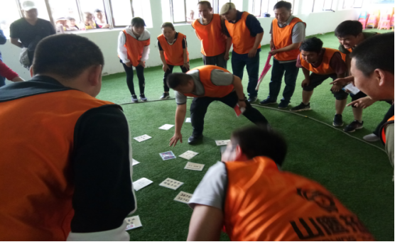 通過系列游戲?qū)胪卣估砟?,同時(shí)建立團(tuán)隊(duì)、選舉隊(duì)長、編隊(duì)歌、取隊(duì)名、定隊(duì)訓(xùn)、繪隊(duì)旗、做團(tuán)隊(duì)雕塑,做文化展示。隊(duì)員在精神整裝和團(tuán)隊(duì)建立時(shí)充滿信心和激情的表現(xiàn),體現(xiàn)出青海物產(chǎn)汽貿(mào)團(tuán)隊(duì)已整裝待發(fā)、破冰起航。