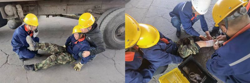 機(jī)械傷害是安全生產(chǎn)人身傷亡事故中最常見的事故類型,組織職工開展應(yīng)急演練,是避免和減少此類事故發(fā)生的重要途徑。為確保此次演練取得預(yù)期效果,配送公司裝卸作業(yè)部提前制定方案,成立安全小組,明確職責(zé)分工,并組織參演人員進(jìn)行演練前培訓(xùn),細(xì)化各環(huán)節(jié)步驟。此次演練模擬作業(yè)人員在庫區(qū)作業(yè)吊裝貨物時,因自身麻痹大意導(dǎo)致被貨物撞擊致傷,造成機(jī)械傷害的場景。在警戒組、應(yīng)急救援組、檢查組、后勤保障組等各參演人員的密切協(xié)作下,圓滿完成了此次演練任務(wù)。