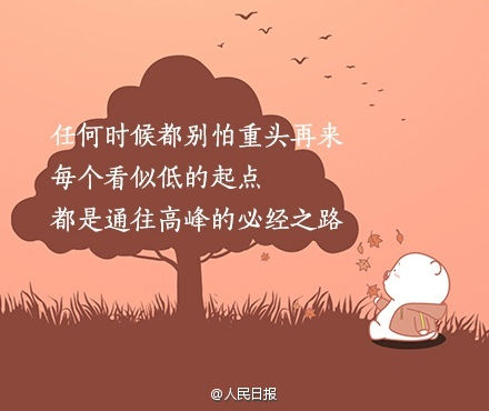 任何時候都別怕重來,每個看似低的起點,都是通往高峰的必經(jīng)之路。你不努力,誰又能替你成長?來源:新浪微博@人民日報