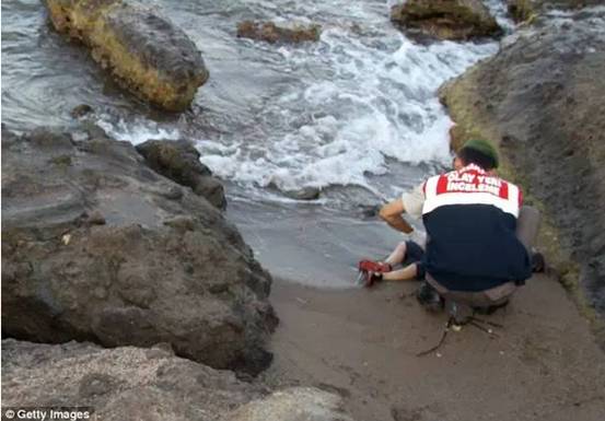 9月2日,3歲男童遺體被沖上土耳其海岸的照片讓整個歐洲心碎。照片中的男孩身穿紅色T恤和短褲,面部朝下趴在沙灘上。