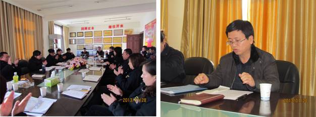 各部、海東分公司負責人進行了充分的準備,認真地實事求是地總結了2012年的工作,取得的經驗,存在的不足,并對2013年的工作進行了安排布置。會上,公司經營目標責任考核組對各部、海東分公司2012年度經營業(yè)績考核情況進行了通報??偨浝韽埡昝窠Y合公司2012年整體工作和2013年重點工作安排,做了重要講話。